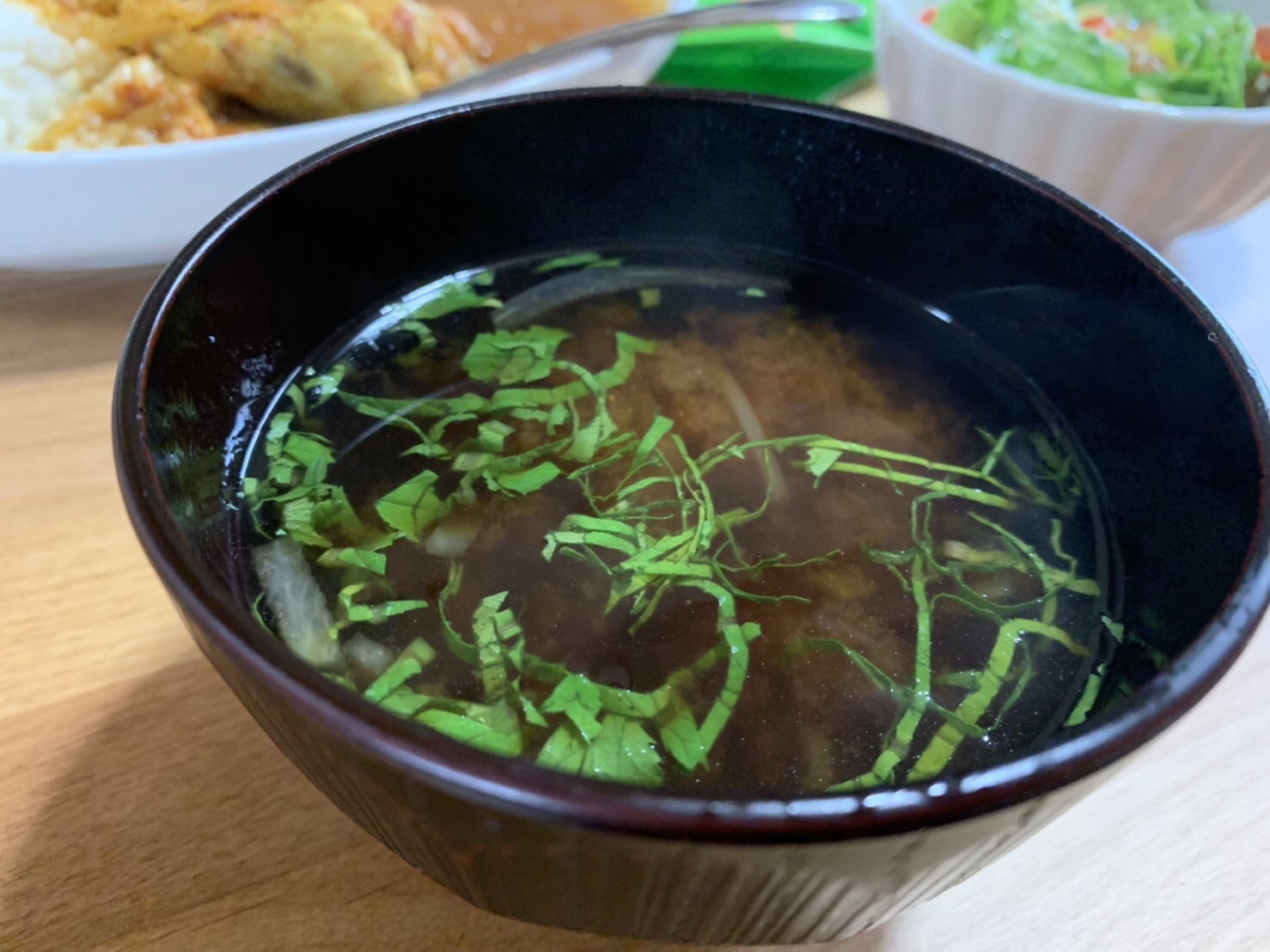 迷いましたがカレーランチと、ハッピー味噌汁をオーダー。