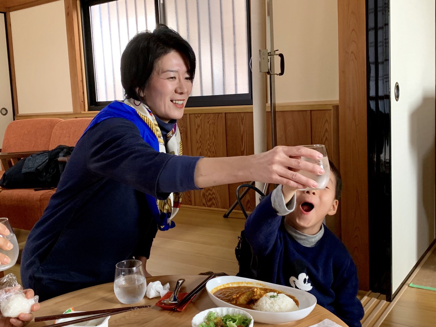 襖を開けると「朝倉先生!!」という、明るい声が響きました。